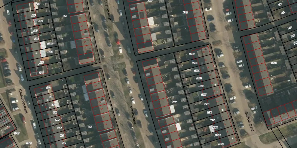 Het perceel waarop Spanjestraat 24 staat heeft een oppervlakte van 1940 m². Dit is een zeer groot perceel. De perceeloppervlakte wordt geregistreerd door het Kadaster. Gedetailleerde informatie over de maten van dit perceel kunt u vinden in het rapport Kadastrale kaart met maatvoering van Spanjestraat 24.