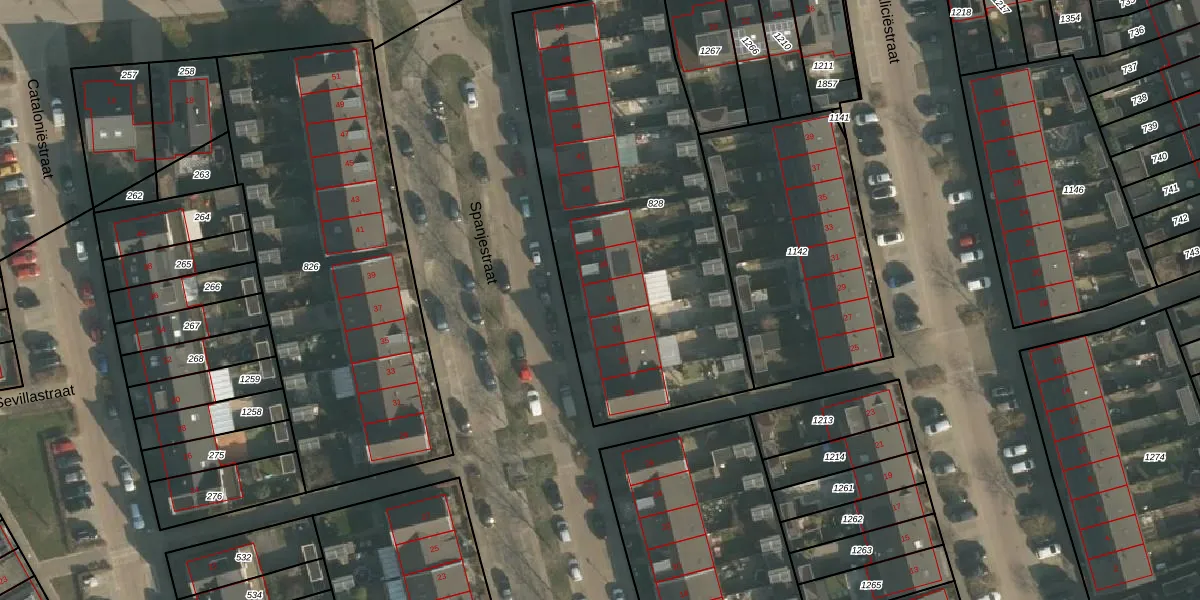 Het perceel waarop Spanjestraat 34 staat heeft een oppervlakte van 1880 m². Dit is een zeer groot perceel. De perceeloppervlakte wordt geregistreerd door het Kadaster. Gedetailleerde informatie over de maten van dit perceel kunt u vinden in het rapport Kadastrale kaart met maatvoering van Spanjestraat 34.