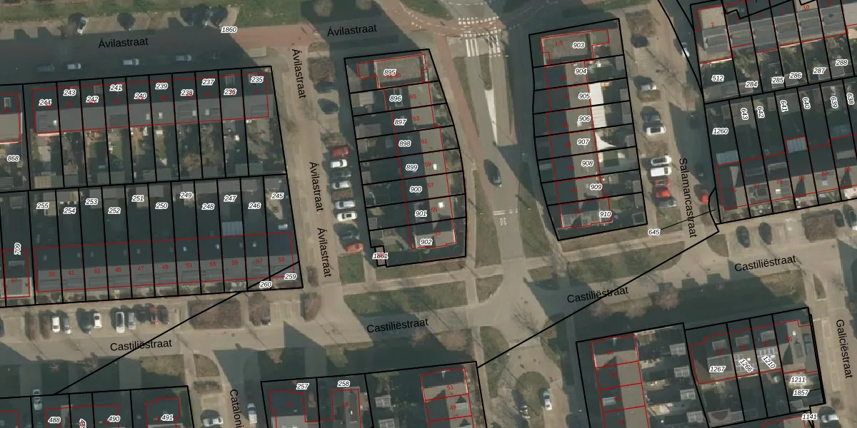 Gebruik de zoekbalk of klik op een perceel voor informatie over de adressen binnen dit perceel.