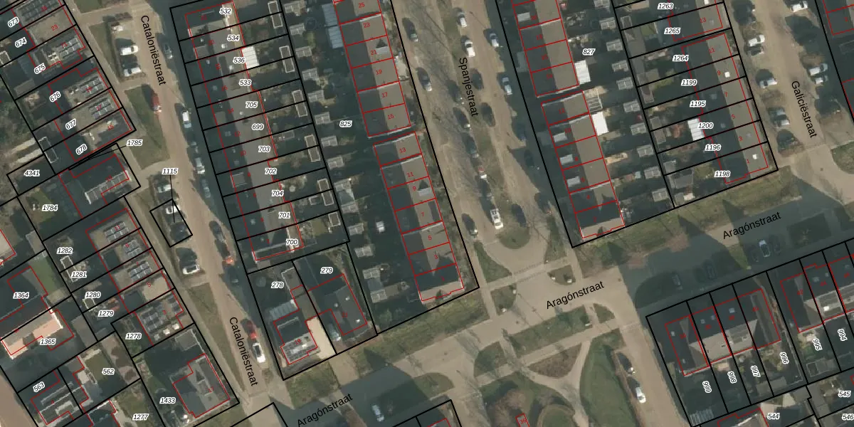 Spanjestraat 7 is gelegen op kadastraal perceel NMG00H825. Deze kadastrale aanduiding is uniek en wordt gebruikt door het Kadaster om eigendomsrechten en andere zakelijke rechten vast te leggen. Het perceel maakt onderdeel uit van de kadastrale gemeente Nijmegen.