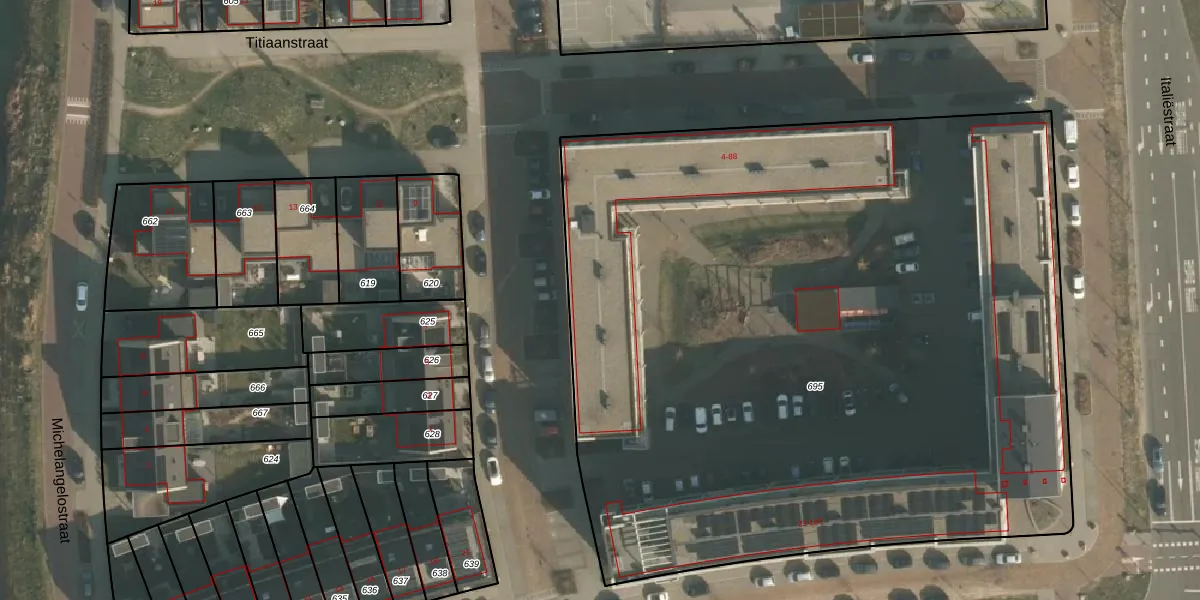 Het perceel waarop Titiaanstraat 16 staat heeft een oppervlakte van 5850 m². Dit is een zeer groot perceel. De perceeloppervlakte wordt geregistreerd door het Kadaster. Gedetailleerde informatie over de maten van dit perceel kunt u vinden in het rapport Kadastrale kaart met maatvoering van Titiaanstraat 16.