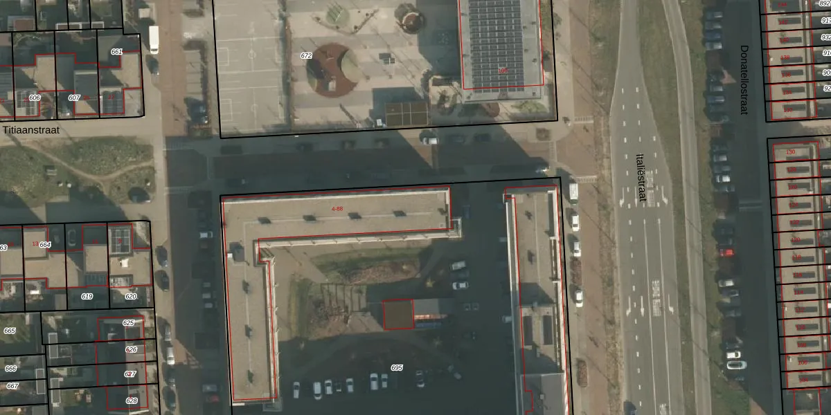 Het perceel waarop Titiaanstraat 42 staat heeft een oppervlakte van 5850 m². Dit is een zeer groot perceel. De perceeloppervlakte wordt geregistreerd door het Kadaster. Gedetailleerde informatie over de maten van dit perceel kunt u vinden in het rapport Kadastrale kaart met maatvoering van Titiaanstraat 42.