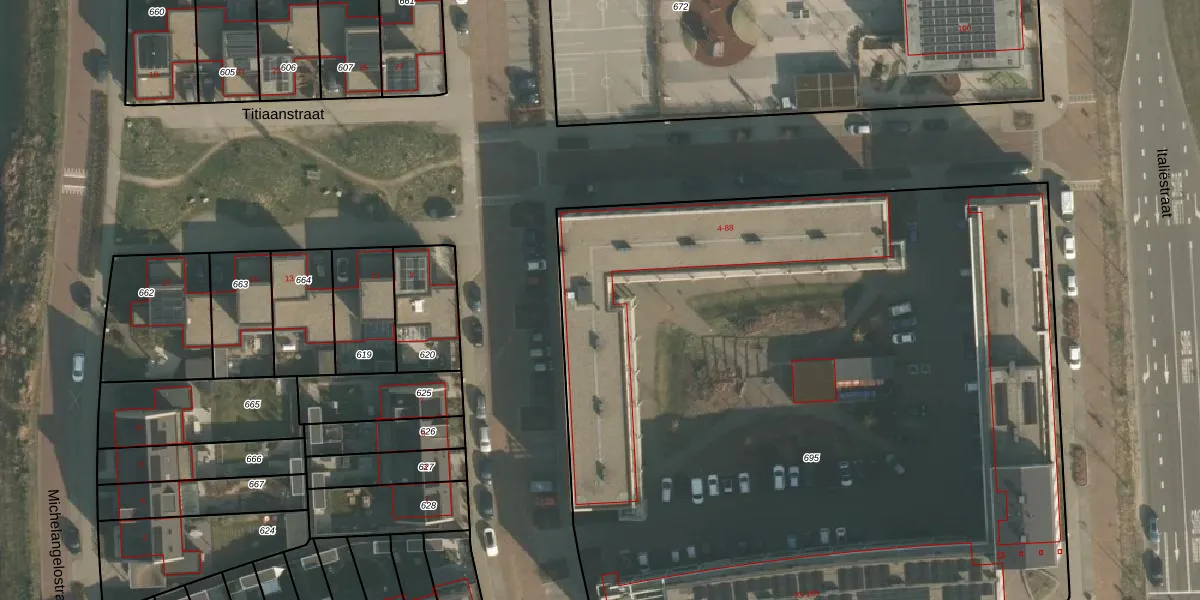 Het perceel waarop Titiaanstraat 52 staat heeft een oppervlakte van 5850 m². Dit is een zeer groot perceel. De perceeloppervlakte wordt geregistreerd door het Kadaster. Gedetailleerde informatie over de maten van dit perceel kunt u vinden in het rapport Kadastrale kaart met maatvoering van Titiaanstraat 52.