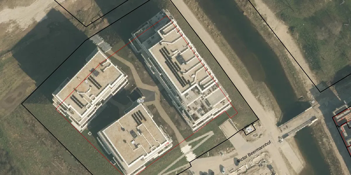 Het perceel waarop Victor Beermannhof 15 staat heeft een oppervlakte van 8740 m². Dit is een zeer groot perceel. De perceeloppervlakte wordt geregistreerd door het Kadaster. Gedetailleerde informatie over de maten van dit perceel kunt u vinden in het rapport Kadastrale kaart met maatvoering van Victor Beermannhof 15.