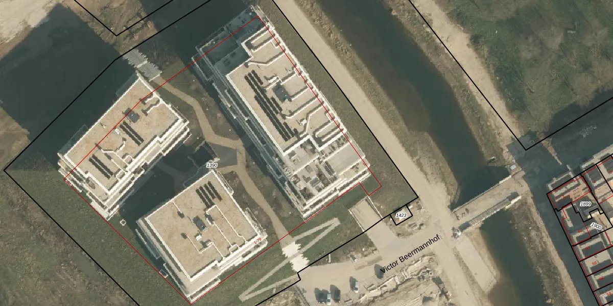 Het perceel waarop Victor Beermannhof 31 staat heeft een oppervlakte van 8740 m². Dit is een zeer groot perceel. De perceeloppervlakte wordt geregistreerd door het Kadaster. Gedetailleerde informatie over de maten van dit perceel kunt u vinden in het rapport Kadastrale kaart met maatvoering van Victor Beermannhof 31.