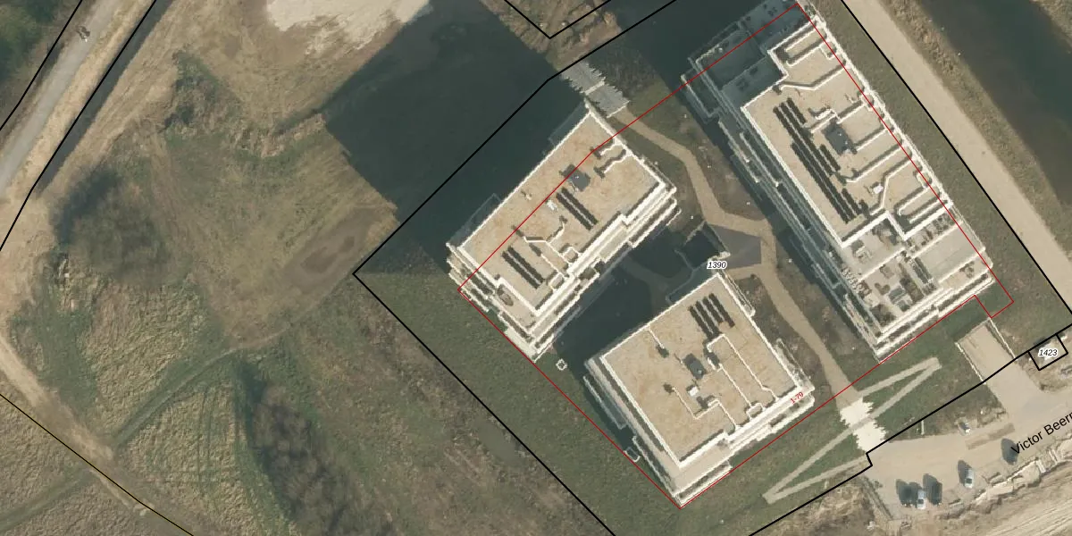 Het perceel waarop Victor Beermannhof 44 staat heeft een oppervlakte van 8740 m². Dit is een zeer groot perceel. De perceeloppervlakte wordt geregistreerd door het Kadaster. Gedetailleerde informatie over de maten van dit perceel kunt u vinden in het rapport Kadastrale kaart met maatvoering van Victor Beermannhof 44.