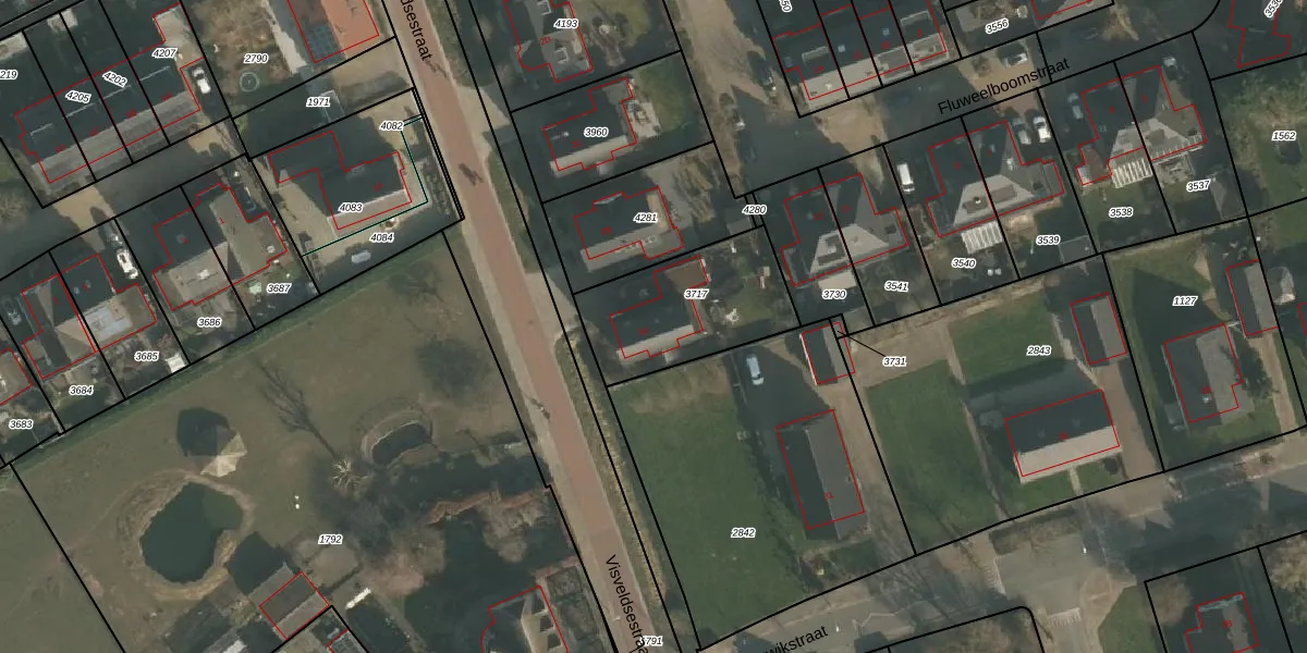 Visveldsestraat 2-A is gelegen op kadastraal perceel LEN00A3717. Deze kadastrale aanduiding is uniek en wordt gebruikt door het Kadaster om eigendomsrechten en andere zakelijke rechten vast te leggen. Het perceel maakt onderdeel uit van de kadastrale gemeente Lent.