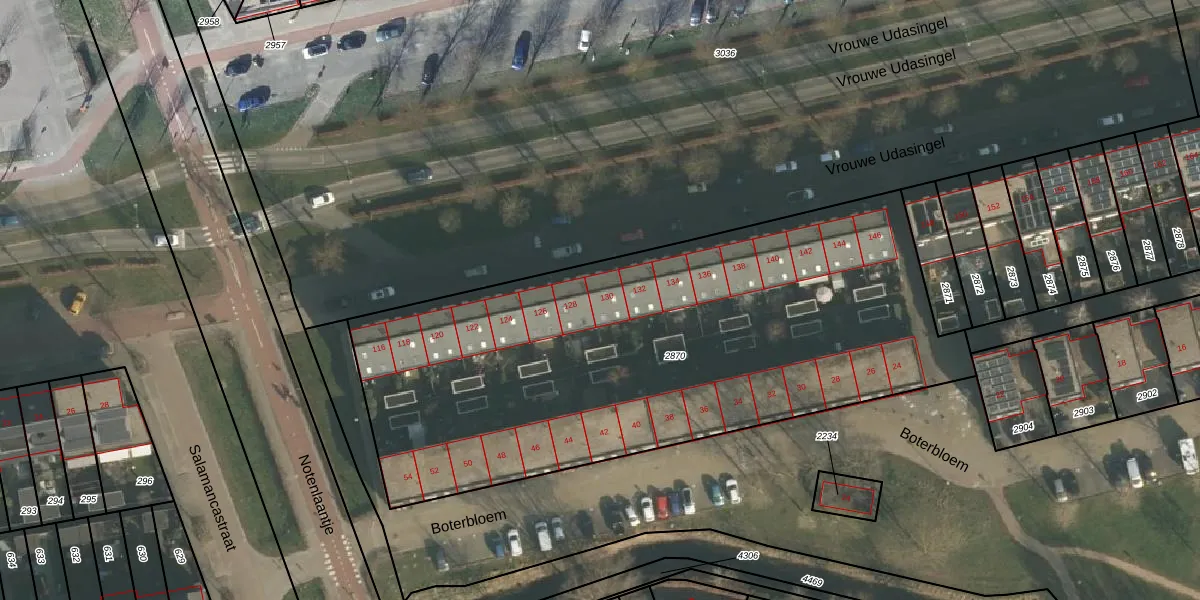 Vrouwe Udasingel 130 is gelegen op kadastraal perceel LEN00A2870. Deze kadastrale aanduiding is uniek en wordt gebruikt door het Kadaster om eigendomsrechten en andere zakelijke rechten vast te leggen. Het perceel maakt onderdeel uit van de kadastrale gemeente Lent.