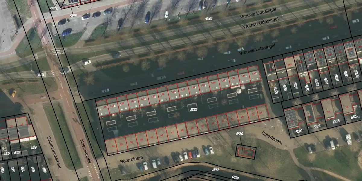 Vrouwe Udasingel 132 is gelegen op kadastraal perceel LEN00A2870. Deze kadastrale aanduiding is uniek en wordt gebruikt door het Kadaster om eigendomsrechten en andere zakelijke rechten vast te leggen. Het perceel maakt onderdeel uit van de kadastrale gemeente Lent.