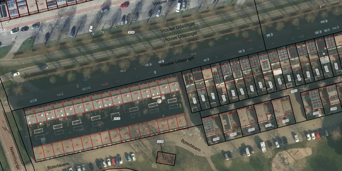 Vrouwe Udasingel 146 is gelegen op kadastraal perceel LEN00A2870. Deze kadastrale aanduiding is uniek en wordt gebruikt door het Kadaster om eigendomsrechten en andere zakelijke rechten vast te leggen. Het perceel maakt onderdeel uit van de kadastrale gemeente Lent.