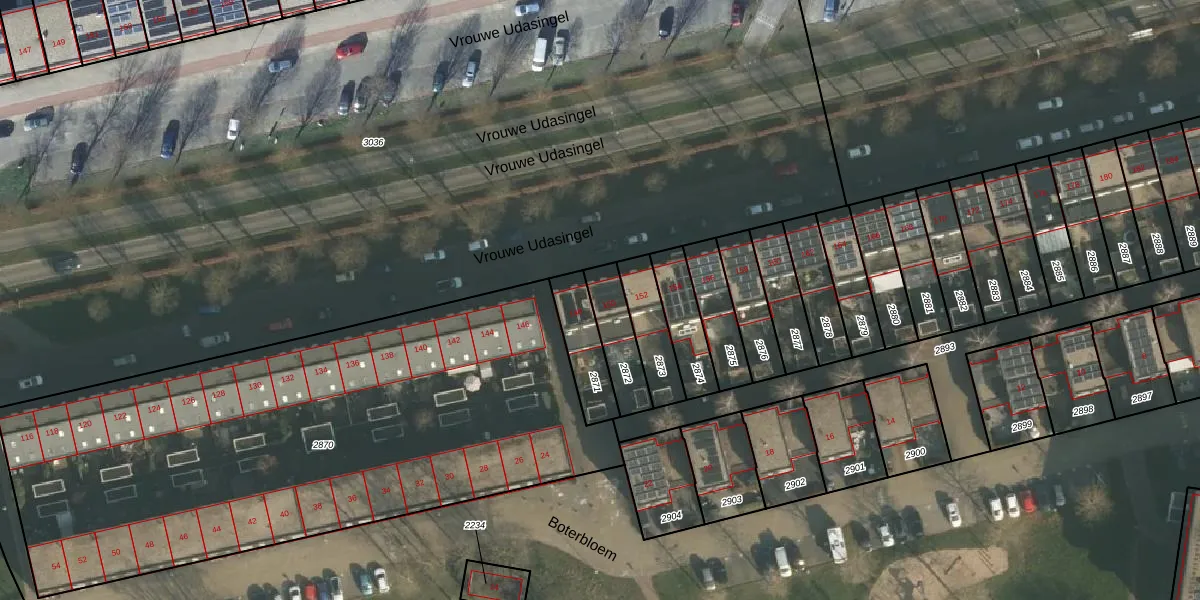 Vrouwe Udasingel 150 is gelegen op kadastraal perceel LEN00A2872. Deze kadastrale aanduiding is uniek en wordt gebruikt door het Kadaster om eigendomsrechten en andere zakelijke rechten vast te leggen. Het perceel maakt onderdeel uit van de kadastrale gemeente Lent.