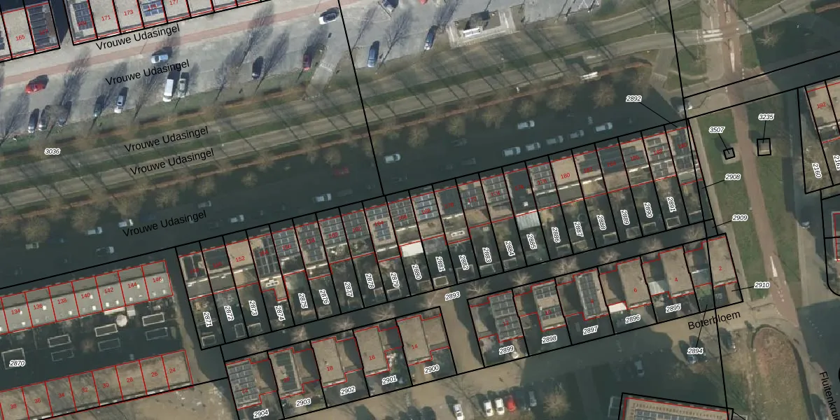 Vrouwe Udasingel 168 is gelegen op kadastraal perceel LEN00A2881. Deze kadastrale aanduiding is uniek en wordt gebruikt door het Kadaster om eigendomsrechten en andere zakelijke rechten vast te leggen. Het perceel maakt onderdeel uit van de kadastrale gemeente Lent.
