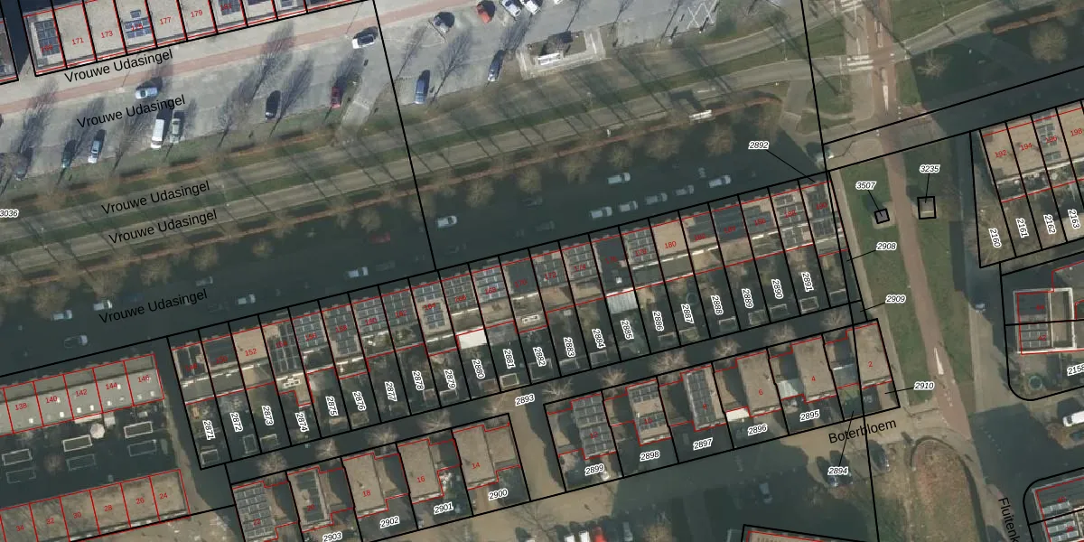 Vrouwe Udasingel 172 is gelegen op kadastraal perceel LEN00A2883. Deze kadastrale aanduiding is uniek en wordt gebruikt door het Kadaster om eigendomsrechten en andere zakelijke rechten vast te leggen. Het perceel maakt onderdeel uit van de kadastrale gemeente Lent.