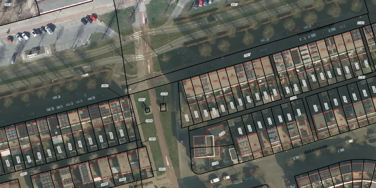 Vrouwe Udasingel 192 is gelegen op kadastraal perceel LEN00A2161. Deze kadastrale aanduiding is uniek en wordt gebruikt door het Kadaster om eigendomsrechten en andere zakelijke rechten vast te leggen. Het perceel maakt onderdeel uit van de kadastrale gemeente Lent.