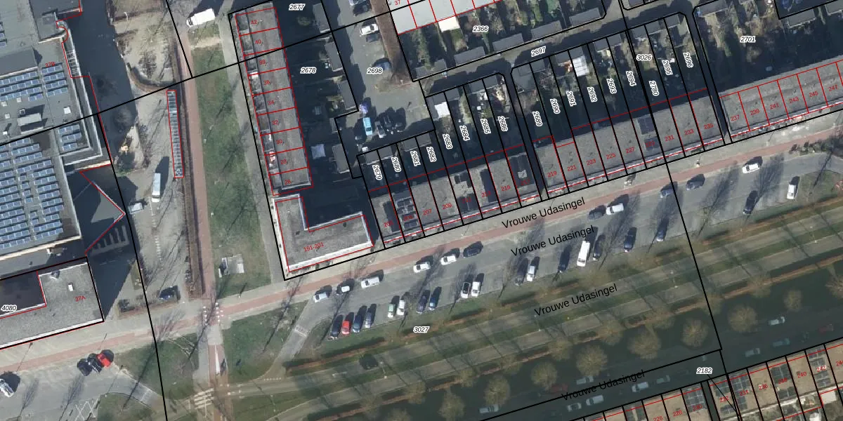Vrouwe Udasingel 207 is gelegen op kadastraal perceel LEN00A2681. Deze kadastrale aanduiding is uniek en wordt gebruikt door het Kadaster om eigendomsrechten en andere zakelijke rechten vast te leggen. Het perceel maakt onderdeel uit van de kadastrale gemeente Lent.