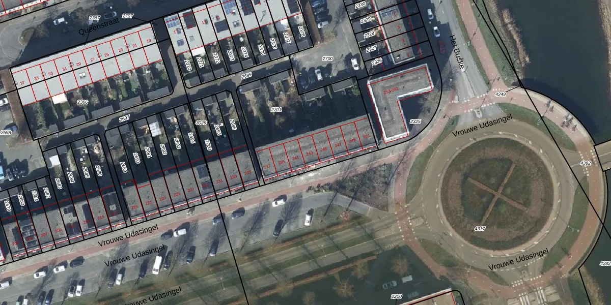 Vrouwe Udasingel 243 is gelegen op kadastraal perceel LEN00A2701. Deze kadastrale aanduiding is uniek en wordt gebruikt door het Kadaster om eigendomsrechten en andere zakelijke rechten vast te leggen. Het perceel maakt onderdeel uit van de kadastrale gemeente Lent.