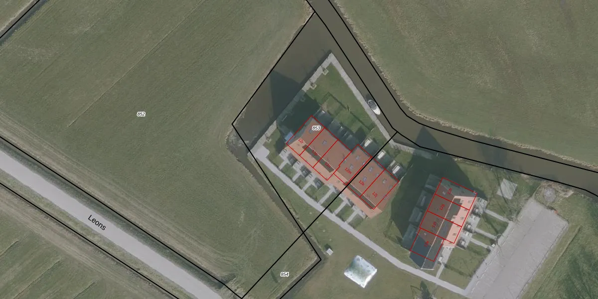 Leons 12-r is gelegen op kadastraal perceel JWD00F853. Deze kadastrale aanduiding is uniek en wordt gebruikt door het Kadaster om eigendomsrechten en andere zakelijke rechten vast te leggen. Het perceel maakt onderdeel uit van de kadastrale gemeente Jorwerd.