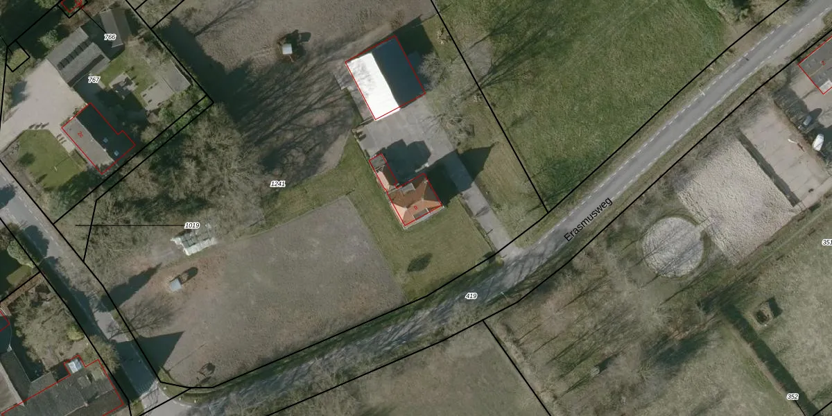 Het perceel waarop Erasmusweg 9 staat heeft een oppervlakte van 8045 m². Dit is een zeer groot perceel. De perceeloppervlakte wordt geregistreerd door het Kadaster. Gedetailleerde informatie over de maten van dit perceel kunt u vinden in het rapport Kadastrale kaart met maatvoering van Erasmusweg 9.