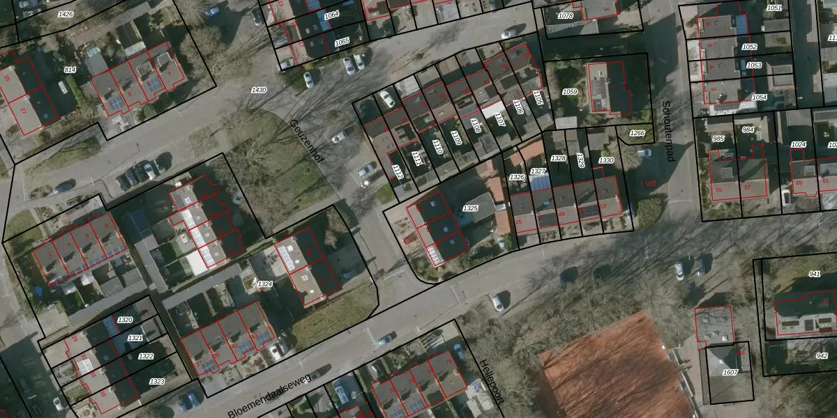 Het perceel waarop Geuzenhof 49 staat heeft een oppervlakte van 585 m². Dit is een groot perceel. De perceeloppervlakte wordt geregistreerd door het Kadaster. Gedetailleerde informatie over de maten van dit perceel kunt u vinden in het rapport Kadastrale kaart met maatvoering van Geuzenhof 49.