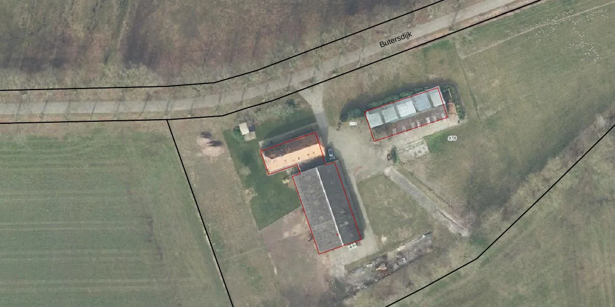 Het perceel waarop Butersdijk 4 staat heeft een oppervlakte van 1,1 ha. Dit is een zeer groot perceel. De perceeloppervlakte wordt geregistreerd door het Kadaster. Gedetailleerde informatie over de maten van dit perceel kunt u vinden in het rapport Kadastrale kaart met maatvoering van Butersdijk 4.