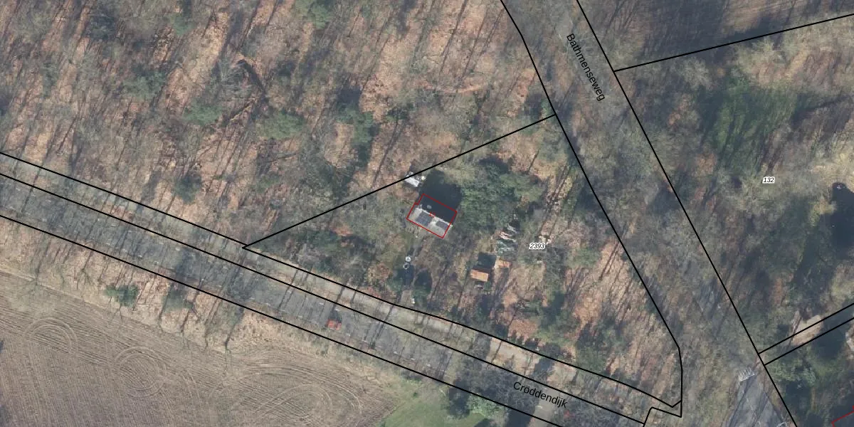 Het perceel waarop Cröddendijk 13 staat heeft een oppervlakte van 2962 m². Dit is een zeer groot perceel. De perceeloppervlakte wordt geregistreerd door het Kadaster. Gedetailleerde informatie over de maten van dit perceel kunt u vinden in het rapport Kadastrale kaart met maatvoering van Cröddendijk 13.