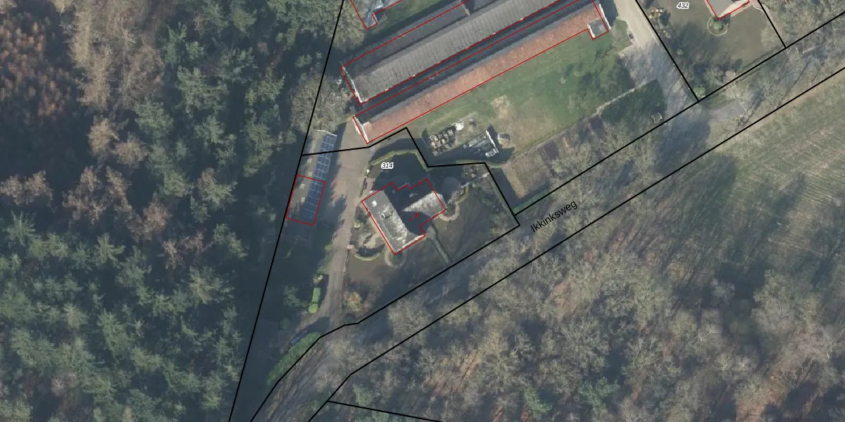Ikkinksweg 1-B is gelegen op kadastraal perceel DPV00L314. Deze kadastrale aanduiding is uniek en wordt gebruikt door het Kadaster om eigendomsrechten en andere zakelijke rechten vast te leggen. Het perceel maakt onderdeel uit van de kadastrale gemeente Diepenveen.
