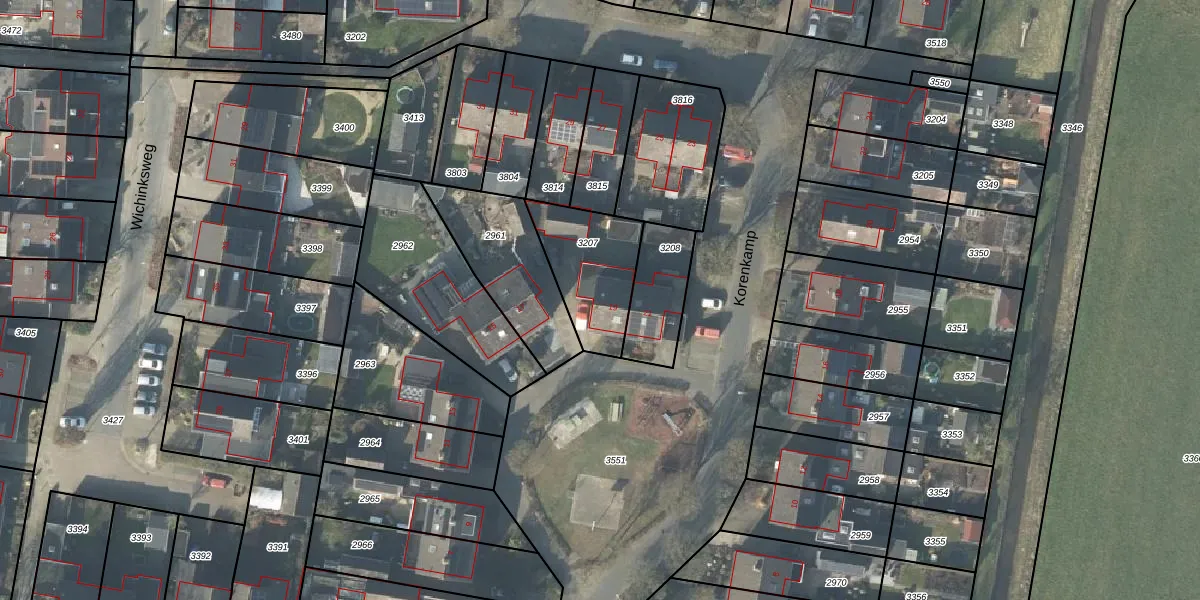 Het perceel waarop Korenkamp 19 staat heeft een oppervlakte van 311 m². Dit is een groot perceel. De perceeloppervlakte wordt geregistreerd door het Kadaster. Gedetailleerde informatie over de maten van dit perceel kunt u vinden in het rapport Kadastrale kaart met maatvoering van Korenkamp 19.