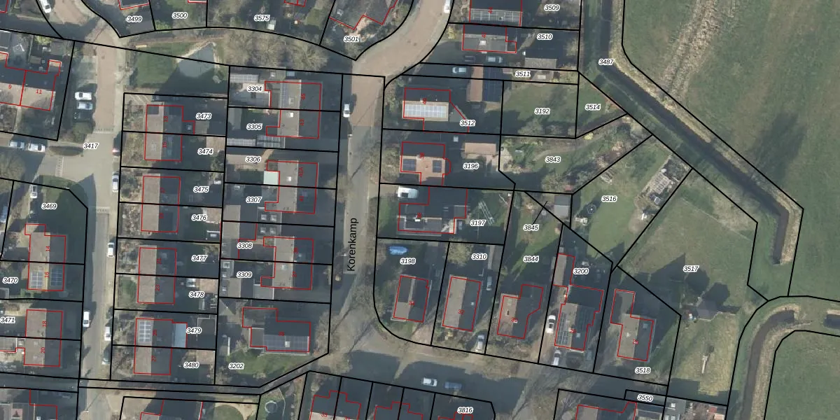 Korenkamp 36 is gelegen op kadastraal perceel DPV00E3197. Deze kadastrale aanduiding is uniek en wordt gebruikt door het Kadaster om eigendomsrechten en andere zakelijke rechten vast te leggen. Het perceel maakt onderdeel uit van de kadastrale gemeente Diepenveen.