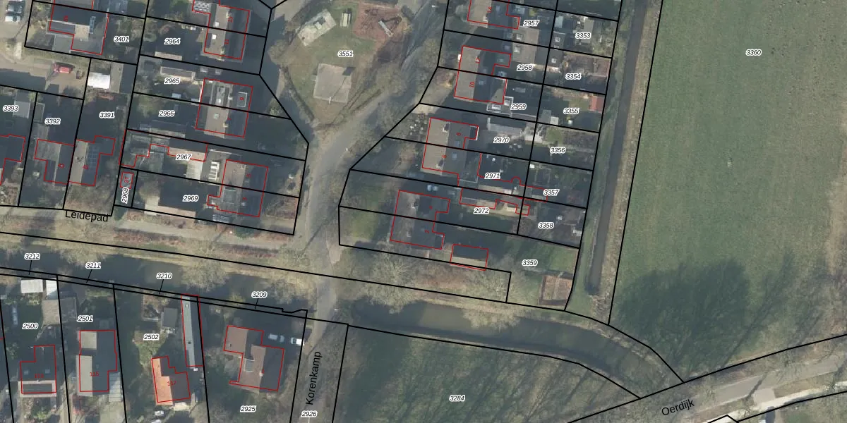Het perceel waarop Korenkamp 4 staat heeft een oppervlakte van 377 m². Dit is een groot perceel. De perceeloppervlakte wordt geregistreerd door het Kadaster. Gedetailleerde informatie over de maten van dit perceel kunt u vinden in het rapport Kadastrale kaart met maatvoering van Korenkamp 4.