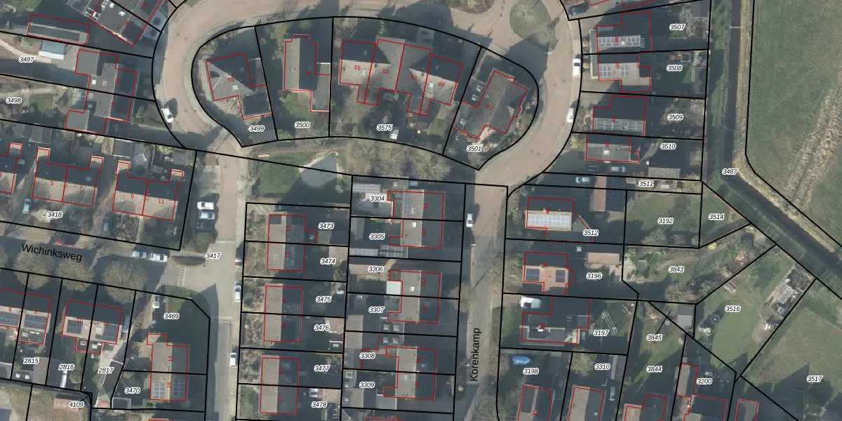 Korenkamp 45 is gelegen op kadastraal perceel DPV00E3304. Deze kadastrale aanduiding is uniek en wordt gebruikt door het Kadaster om eigendomsrechten en andere zakelijke rechten vast te leggen. Het perceel maakt onderdeel uit van de kadastrale gemeente Diepenveen.