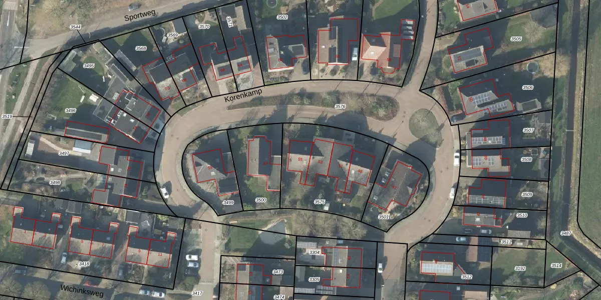 Het perceel waarop Korenkamp 55 staat heeft een oppervlakte van 897 m². Dit is een groot perceel. De perceeloppervlakte wordt geregistreerd door het Kadaster. Gedetailleerde informatie over de maten van dit perceel kunt u vinden in het rapport Kadastrale kaart met maatvoering van Korenkamp 55.