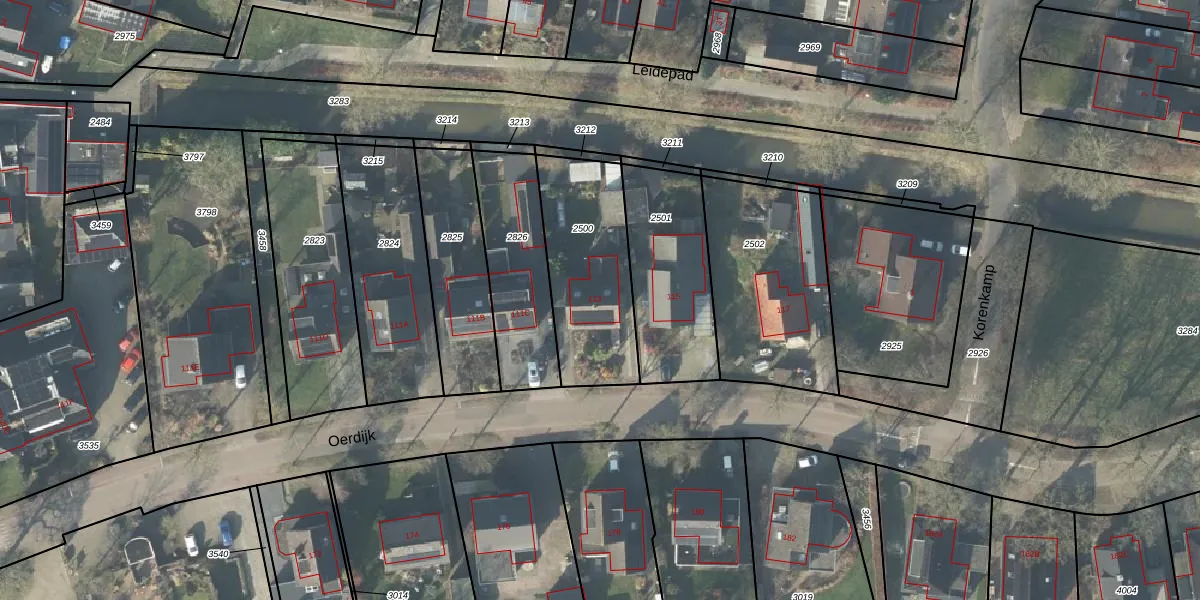 Oerdijk 113 is gelegen op kadastraal perceel DPV00E2500. Deze kadastrale aanduiding is uniek en wordt gebruikt door het Kadaster om eigendomsrechten en andere zakelijke rechten vast te leggen. Het perceel maakt onderdeel uit van de kadastrale gemeente Diepenveen.