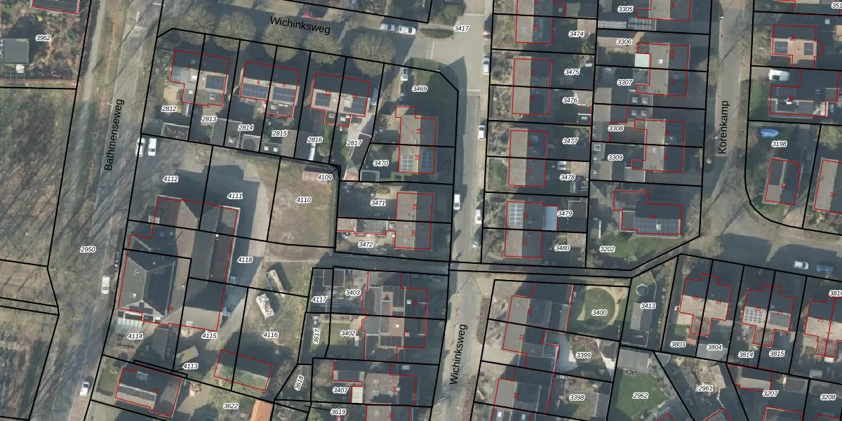 Gebruik de zoekbalk of klik op een perceel voor informatie over de adressen binnen dit perceel.
