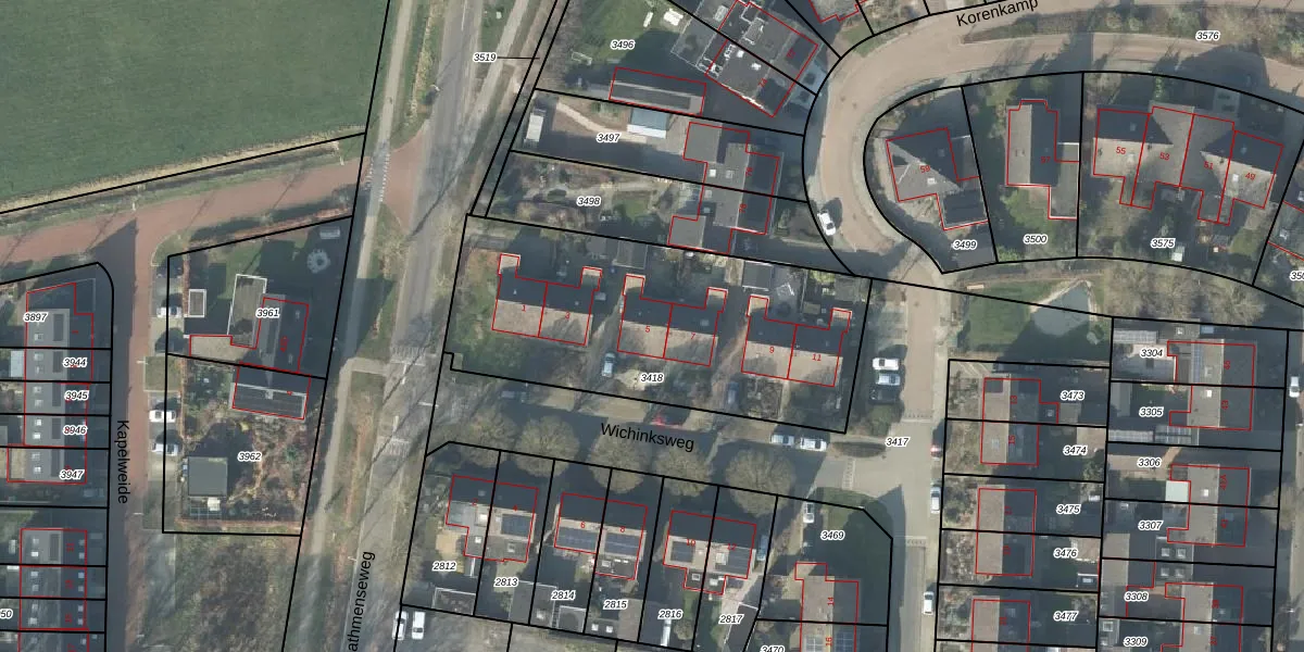 Het perceel waarop Wichinksweg 5 staat heeft een oppervlakte van 1500 m². Dit is een zeer groot perceel. De perceeloppervlakte wordt geregistreerd door het Kadaster. Gedetailleerde informatie over de maten van dit perceel kunt u vinden in het rapport Kadastrale kaart met maatvoering van Wichinksweg 5.