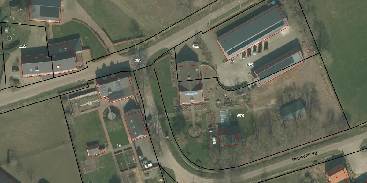 Het perceel waarop Blankenberg 1 staat heeft een oppervlakte van 4245 m². Dit is een zeer groot perceel. De perceeloppervlakte wordt geregistreerd door het Kadaster. Gedetailleerde informatie over de maten van dit perceel kunt u vinden in het rapport Kadastrale kaart met maatvoering van Blankenberg 1.