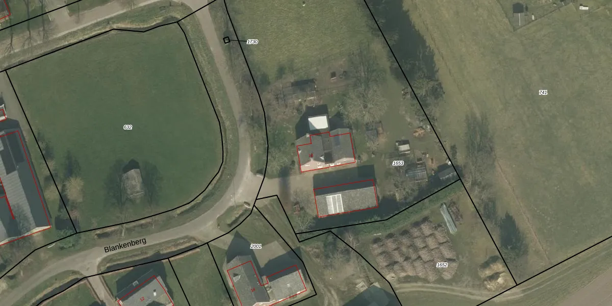 Het perceel waarop Blankenberg 16 staat heeft een oppervlakte van 4370 m². Dit is een zeer groot perceel. De perceeloppervlakte wordt geregistreerd door het Kadaster. Gedetailleerde informatie over de maten van dit perceel kunt u vinden in het rapport Kadastrale kaart met maatvoering van Blankenberg 16.