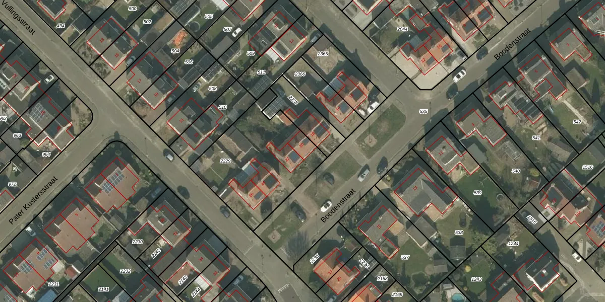 Boodenstraat 20 is gelegen op kadastraal perceel VRY00N2229. Deze kadastrale aanduiding is uniek en wordt gebruikt door het Kadaster om eigendomsrechten en andere zakelijke rechten vast te leggen. Het perceel maakt onderdeel uit van de kadastrale gemeente Venray.