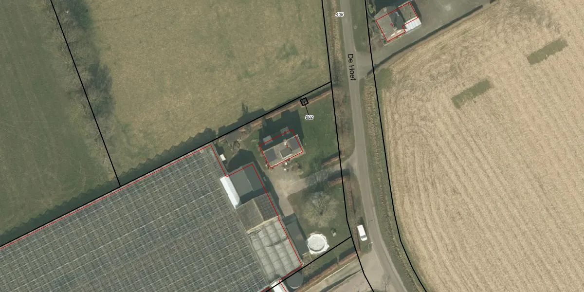Het perceel waarop De Hoef 2 staat heeft een oppervlakte van 1,3 ha. Dit is een zeer groot perceel. De perceeloppervlakte wordt geregistreerd door het Kadaster. Gedetailleerde informatie over de maten van dit perceel kunt u vinden in het rapport Kadastrale kaart met maatvoering van De Hoef 2.