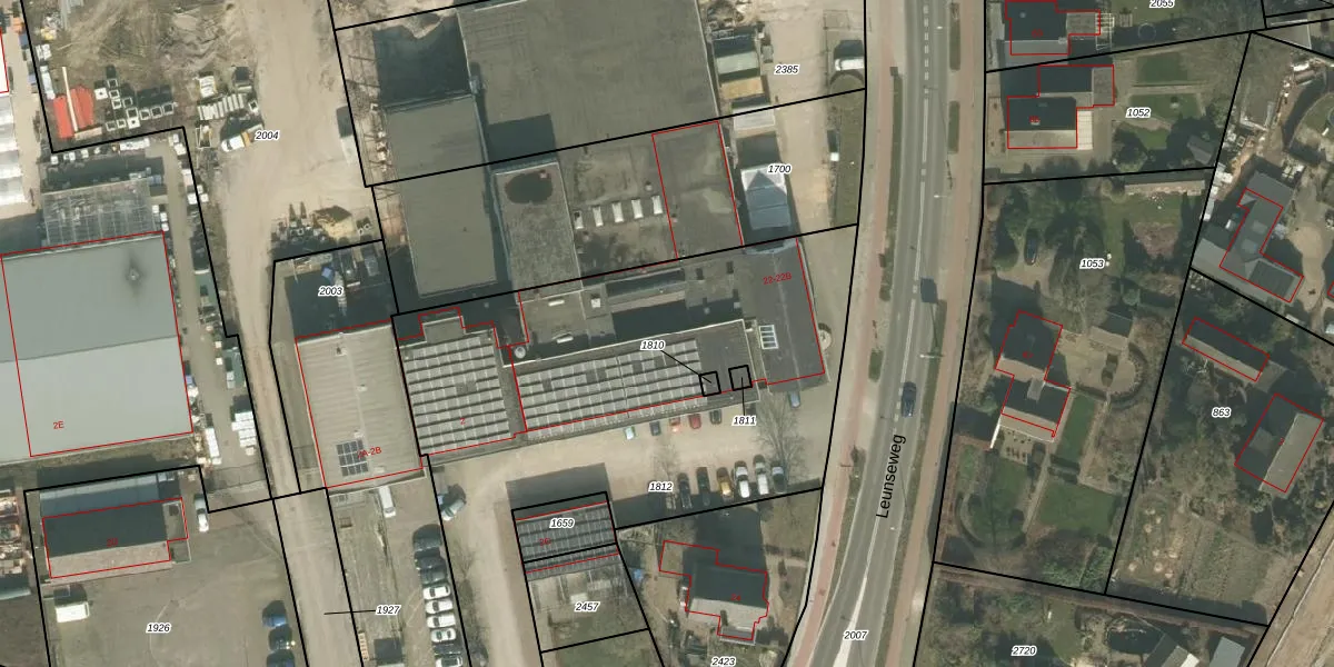 Leunseweg 22 is gelegen op kadastraal perceel VRY00N1812. Deze kadastrale aanduiding is uniek en wordt gebruikt door het Kadaster om eigendomsrechten en andere zakelijke rechten vast te leggen. Het perceel maakt onderdeel uit van de kadastrale gemeente Venray.