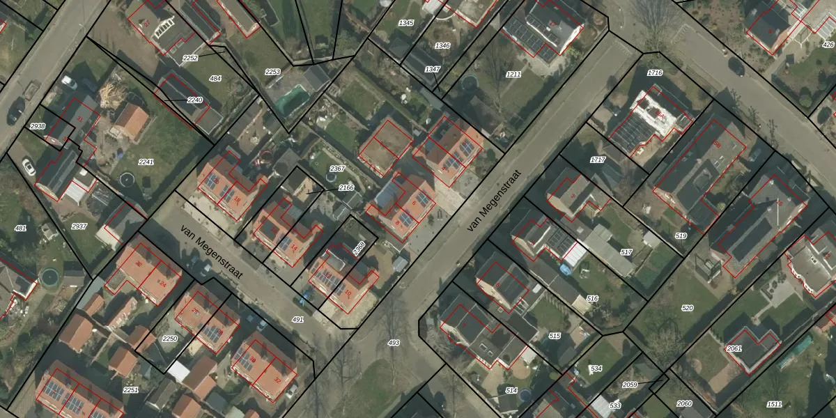 Het perceel waarop van Megenstraat 6 staat heeft een oppervlakte van 2393 m². Dit is een zeer groot perceel. De perceeloppervlakte wordt geregistreerd door het Kadaster. Gedetailleerde informatie over de maten van dit perceel kunt u vinden in het rapport Kadastrale kaart met maatvoering van van Megenstraat 6.