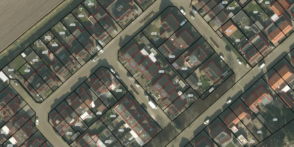 Het perceel waarop Weipas 7 staat heeft een oppervlakte van 1249 m². Dit is een zeer groot perceel. De perceeloppervlakte wordt geregistreerd door het Kadaster. Gedetailleerde informatie over de maten van dit perceel kunt u vinden in het rapport Kadastrale kaart met maatvoering van Weipas 7.