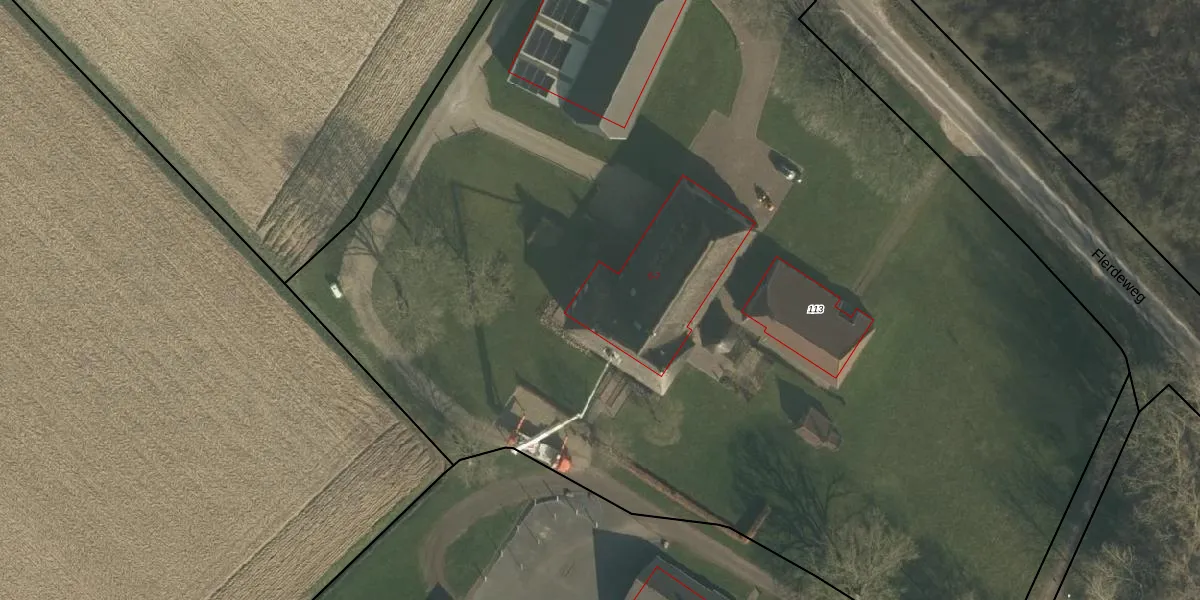 Het perceel waarop Flerdeweg 7 staat heeft een oppervlakte van 1,0 ha. Dit is een zeer groot perceel. De perceeloppervlakte wordt geregistreerd door het Kadaster. Gedetailleerde informatie over de maten van dit perceel kunt u vinden in het rapport Kadastrale kaart met maatvoering van Flerdeweg 7.