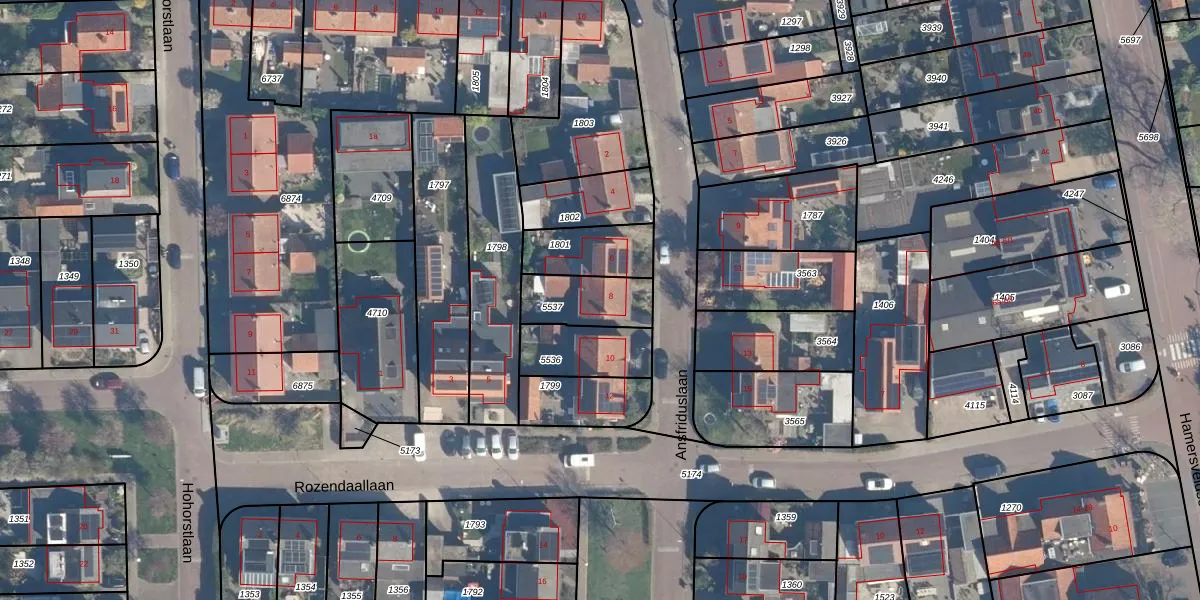 Het perceel waarop Ansfriduslaan 8 staat heeft een oppervlakte van 180 m². Dit is een middelgroot perceel. De perceeloppervlakte wordt geregistreerd door het Kadaster. Gedetailleerde informatie over de maten van dit perceel kunt u vinden in het rapport Kadastrale kaart met maatvoering van Ansfriduslaan 8.
