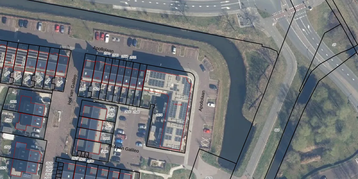 Apollolaan 164 is gelegen op kadastraal perceel LDN02D2574. Deze kadastrale aanduiding is uniek en wordt gebruikt door het Kadaster om eigendomsrechten en andere zakelijke rechten vast te leggen. Het perceel maakt onderdeel uit van de kadastrale gemeente Leusden.