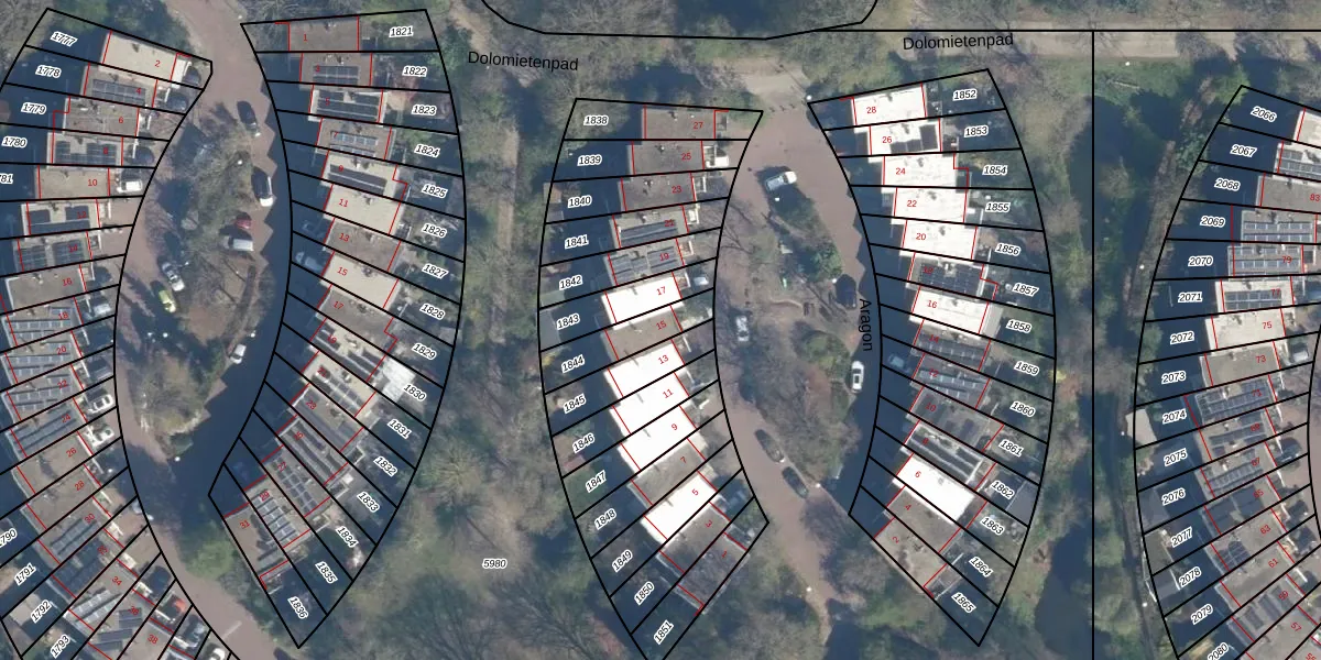 Het perceel waarop Aragon 15 staat heeft een oppervlakte van 147 m². Dit is een middelgroot perceel. De perceeloppervlakte wordt geregistreerd door het Kadaster. Gedetailleerde informatie over de maten van dit perceel kunt u vinden in het rapport Kadastrale kaart met maatvoering van Aragon 15.