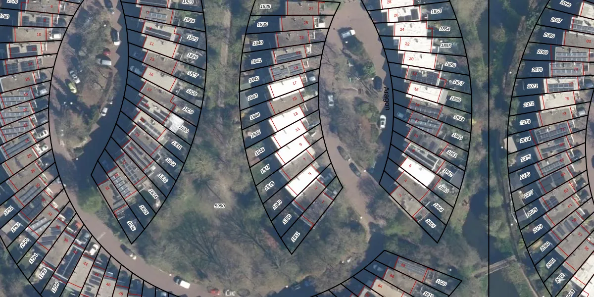 Het perceel waarop Aragon 9 staat heeft een oppervlakte van 147 m². Dit is een middelgroot perceel. De perceeloppervlakte wordt geregistreerd door het Kadaster. Gedetailleerde informatie over de maten van dit perceel kunt u vinden in het rapport Kadastrale kaart met maatvoering van Aragon 9.