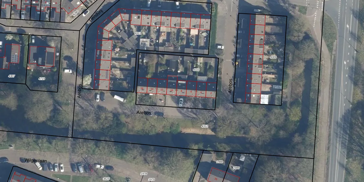 Arebos 8 is gelegen op kadastraal perceel LDN02E4310. Deze kadastrale aanduiding is uniek en wordt gebruikt door het Kadaster om eigendomsrechten en andere zakelijke rechten vast te leggen. Het perceel maakt onderdeel uit van de kadastrale gemeente Leusden.