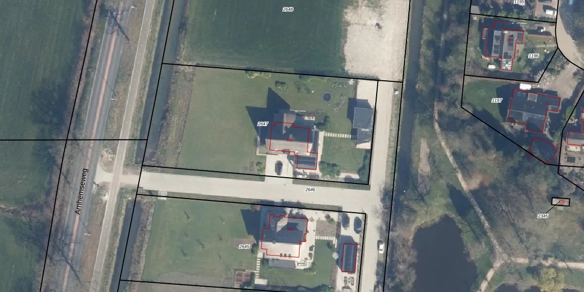 Het perceel waarop Arnhemseweg 33-b staat heeft een oppervlakte van 2690 m². Dit is een zeer groot perceel. De perceeloppervlakte wordt geregistreerd door het Kadaster. Gedetailleerde informatie over de maten van dit perceel kunt u vinden in het rapport Kadastrale kaart met maatvoering van Arnhemseweg 33-b.