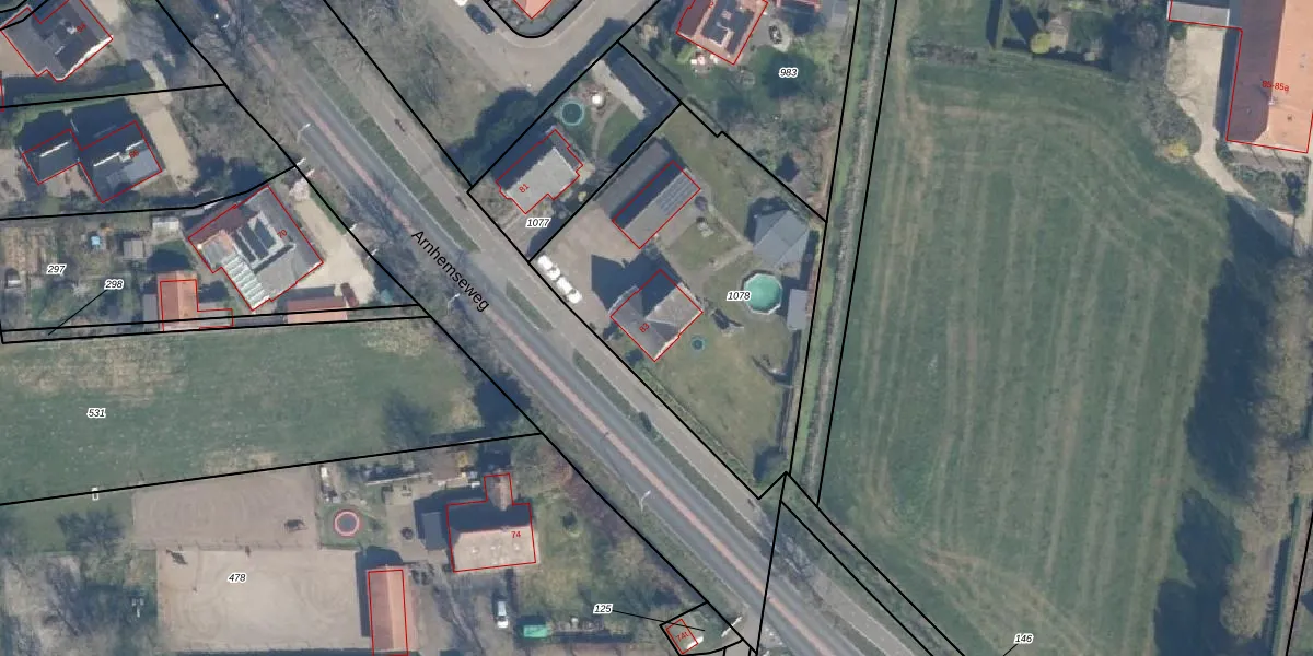 Het perceel waarop Arnhemseweg 83 staat heeft een oppervlakte van 1495 m². Dit is een zeer groot perceel. De perceeloppervlakte wordt geregistreerd door het Kadaster. Gedetailleerde informatie over de maten van dit perceel kunt u vinden in het rapport Kadastrale kaart met maatvoering van Arnhemseweg 83.