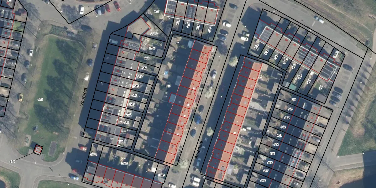 Het perceel waarop Arsenaal 15 staat heeft een oppervlakte van 1643 m². Dit is een zeer groot perceel. De perceeloppervlakte wordt geregistreerd door het Kadaster. Gedetailleerde informatie over de maten van dit perceel kunt u vinden in het rapport Kadastrale kaart met maatvoering van Arsenaal 15.